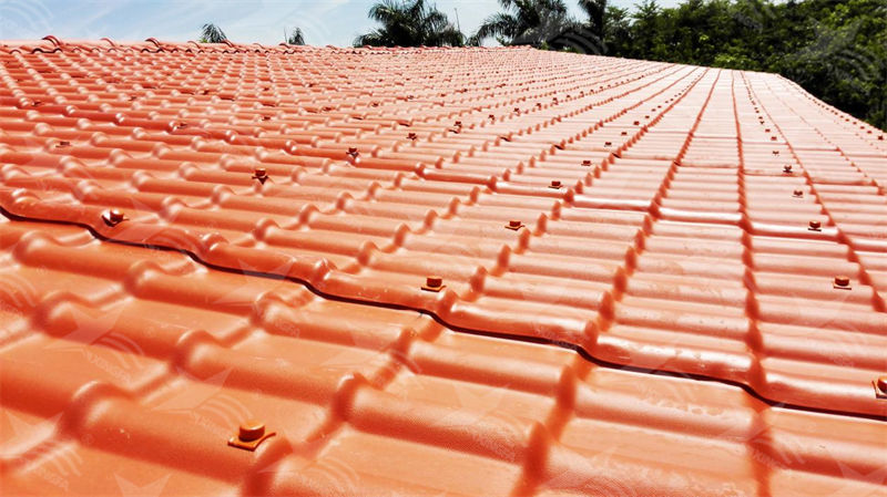 此外,树脂瓦的轻质设计也是一大优势。相比传统的隔热砖和水泥瓦,树脂瓦重量更轻,不会增加屋顶的承重负担,适用于各种建筑结构。其优良的耐候性和耐腐蚀性,使其使用寿命更长,减少了维护和更换的频率。